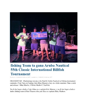 ORANJESTAD - Diadomingo tawata e dia final di Aruba Nautical su fishing tournament