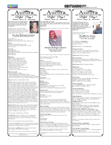 Famia, Gabriel (Vale) Werleman y Famia, Sylvio (Theo) Werleman He is also mourned by many nieces, nephews, great-nieces, Rosario y Regina Disla del Rosario, Sunilda Disla del