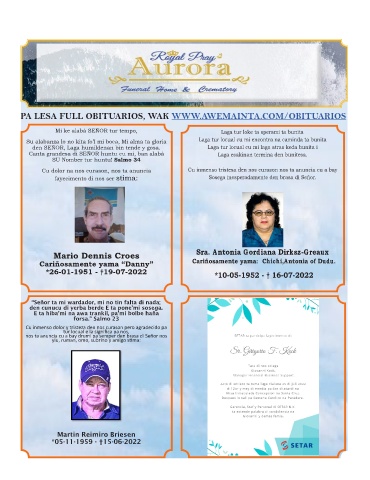 Cu dolor na nos curason, nos ta anuncia Cu inmenso tristesa den nos curason nos ta anuncia cu a bay