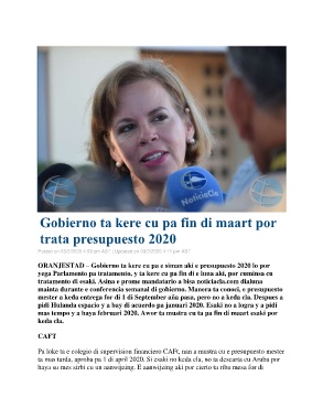ORANJESTAD – Gobierno ta kere cu pa e siman aki e presupuesto 2020 lo por