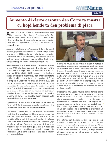 cu den 2021 tabatin un aumento di un tiki mas cu 20% cu e drenta Corte te ora cu tin un decision den prome