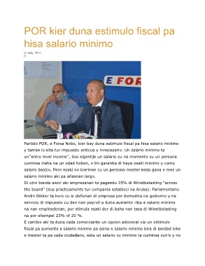 Partido POR, e Forsa Nobo, kier bay duna estimulo fiscal pa hisa salario minimo