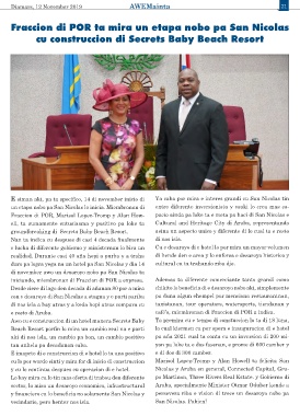 Awo cu e construccion di un hotel manera Secrets Baby Ta premira cu e tempo di constuccion lo ta di 18 luna,