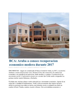 ORANJESTAD – Segun un comunicado di Banco Central di Aruba, na 2017, e economia