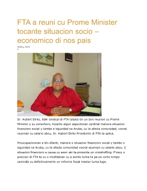 esunnan cu salario abou, Sr. Hubert Dirks Presidente di FTA ta splica.