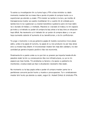 Ta asina cu investigacion tin cu tuma luga y FTA a bisa minister cu dado