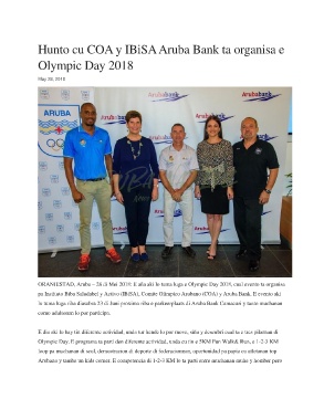 ORANJESTAD, Aruba – 28 di Mei 2018: E aña aki lo tuma luga e Olympic Day 2018, cual evento ta organisa