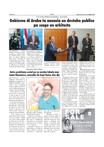 ertura di un destaho publico cu Oranjestad ta bira un cen- diferente arkitecto entrega tiendo di Gobierno di Aruba renobacion urbano cu nos a