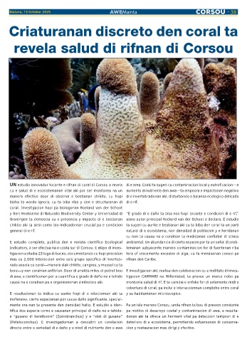 UN estudio innovador tocante e rifnan di coral di Corsou a revela di e area. Esaki ta sugeri cu contaminacion local y eutroficacion—e