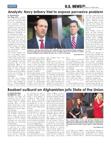 in bribes to Navy officers. prostitutes and meals with the ships at Pacific ports in who is in poor health and who is an enlisted sailor.q