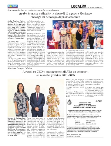mas preferi y reconoci den asina por mantene Aruba su agencia na Merca pa dife- ta posibel. Aña pasa a contrata añanan di dedicacion pro-