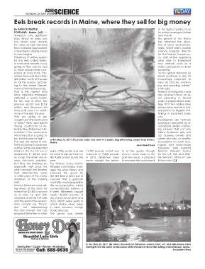 be, but this year it's high." In this May 25, 2017, file photo, baby eels swim in a plastic bag after being caught near Brewer, others who rely on healthy