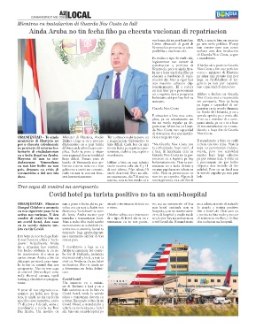 Dangui Oduber a anuncia sobra ora cu nan ta habri nos e virus. nan hotel caminda nan ta lo atende e turista positivo