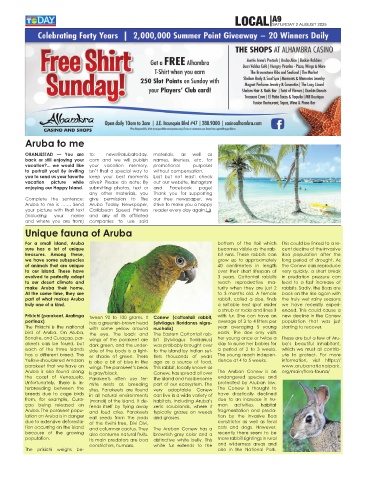 lation on Aruba is in danger eat seeds from the pods and grasses. tion by the invasive Boa