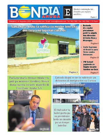 Diasabra 2 di Augustus 2025 www.bondia.com Email: noticia@bondia.com Tel: 582-7800 Fax: 582-7044 1,75 Florin