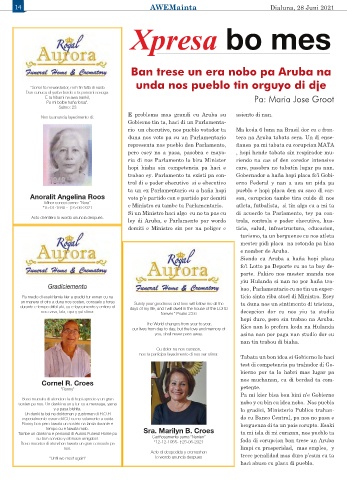 Tambe un danki na e personal di Aurora Funeral Home pa ta mi isla di mi curazon, nos pueblo ta