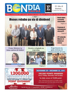 Diabierna 13 di December 2019 www.bondia.com Email: noticia@bondia.com Tel: 582-7800 Fax: 582-7044 1,75 Florin