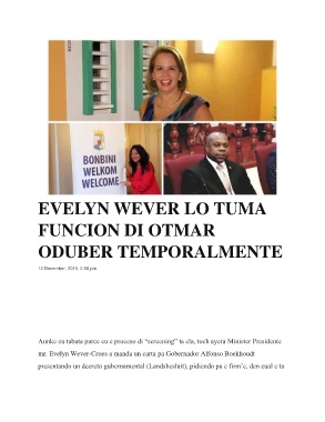 mr. Evelyn Wever-Croes a manda un carta pa Gobernador Alfonso Boekhoudt