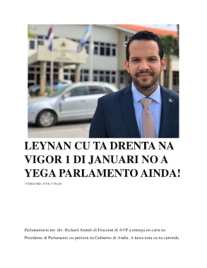 Presidente di Parlamento cu peticion na Gobierno di Aruba. A tuma nota cu na caminda