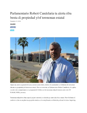 ehecuta cu propiedad y/of terenonan estatal. Den un entrevista cu Parlamentario Robert Candelaria, el a splica