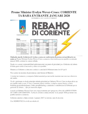 DI TARIFA DI CORIENTE. Tarifa di coriente ta baha entrante 1e di januari 2020 pa henter nos