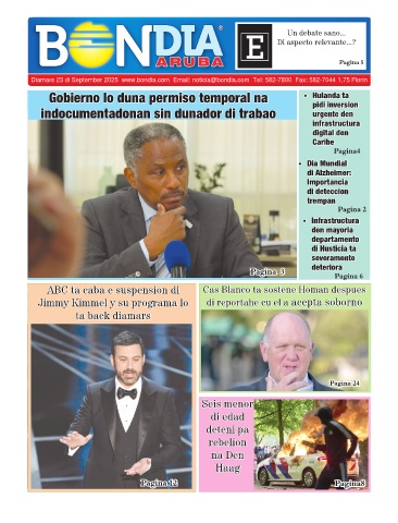 Diamars 23 di September 2025 www.bondia.com Email: noticia@bondia.com Tel: 582-7800 Fax: 582-7044 1,75 Florin