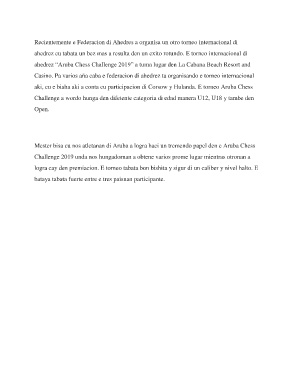 aki, cu e biaha aki a conta cu participacion di Corsow y Hulanda. E torneo Aruba Chess