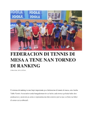 E sistema di ranking ta uno hopi importante pa e federacion di tennis di mesa, esta Aruba