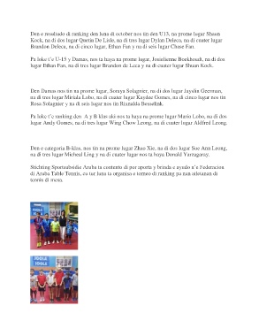 Den e resultado di ranking den luna di october nos tin den U13, na prome lugar Shaun