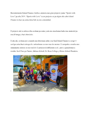 Recientemente Island Finance Aruba a anuncia nan gran projecto yama “Sports with