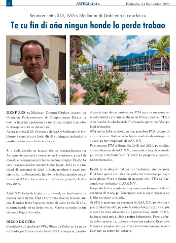Presidente di sindicato STA, Diego de Cuba no ta nada lo haya e proposicion pa ofrece n’e trahadornan, si nan