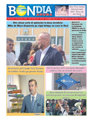 Diaranson 6 di Augustus 2025 www.bondia.com Email: noticia@bondia.com Tel: 582-7800 Fax: 582-7044 1,75 Florin