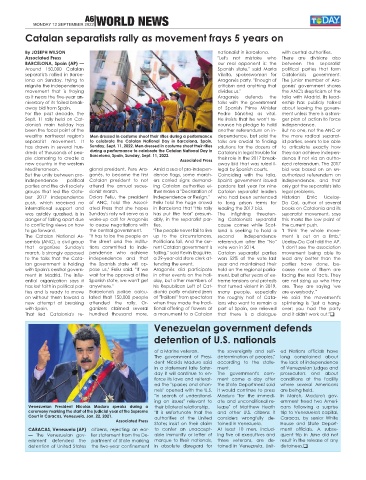 dreds of thousands of peo- during a performance to celebrate the Catalan National Day in Catalans in legal trouble for they can achieve indepen-