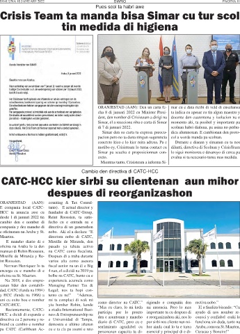 uni cu exito bou e nomber mi ta complaci di wak mi como director na CATC.” rigiendo e compañía den rectiva nobo.”