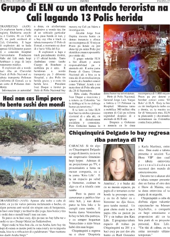 ta benta sushi den mondi ta doblega ni lo no doblega a bishita e 13 Polisnan na Rolo’ di ELN. Esey ta bin