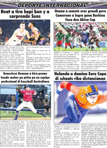6 inning contra Adelaide Giants softball of otro deporte cu bo no sibel 14 medayanan di oro. tabata den 500 meter masculino. E