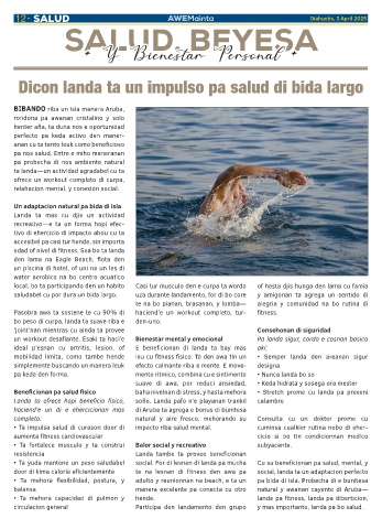 mobilidad limita, como tambe hende leu cu fitness fisico. Ta den awa tin un • Semper landa den areanan sigur