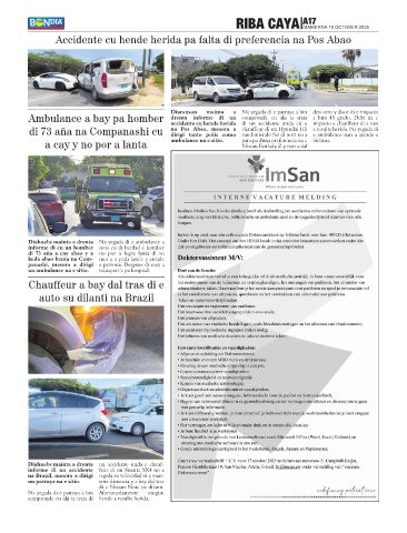 Ambulance a bay pa homber drenta informe di un compronde cu aki ta trata a bira 45 grado. Debi na e