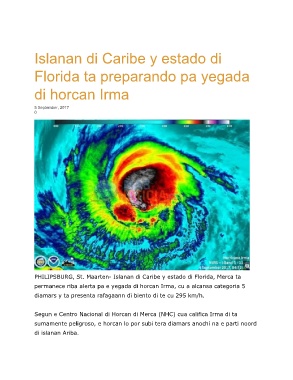 permanece riba alerta pa e yegada di horcan Irma, cu a alcansa categoria 5