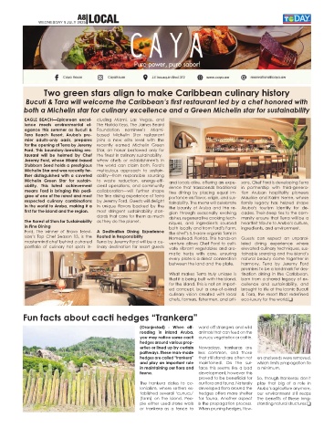 in the world to Aruba, making it a in unique flavors backed by the the bounty of Aruba and the re- Aruba’s tourism identity for de-