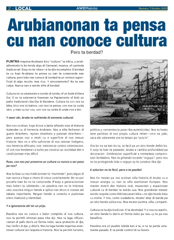 Y awor aki, Aruba ta sufriendo di amnesia cultural.