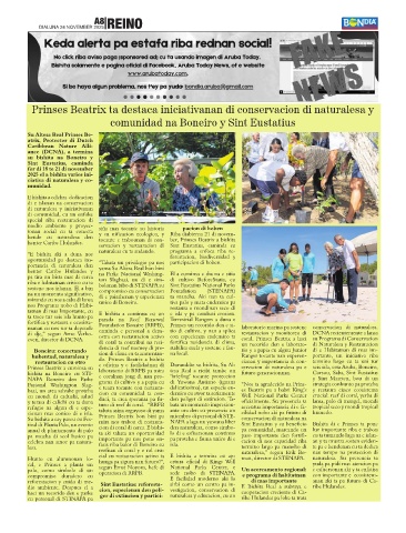 baai, un area salvahe proteha cion cu comunidad ta con- demico cu awor ta seriamente es Beatrix pa a habri King’s y restaura cinco ecosistema