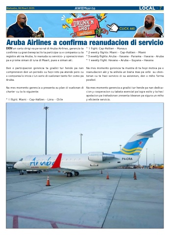 pa e prome siman di luna di Maart, pues e siman aki. * 1 weekly flight: Havana – Aruba – Guyana – Havana
