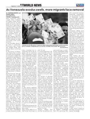 About 1 million Venezu- busiest border cities. Ac- there as a "voluntary de- people fleeing violence, boarded onto the truck