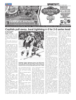 en matchup on the road. ed,” coach Barry Trotz said. cost us,” Tampa Bay coach and an assist in Washing- ter losing Game 1. They’re