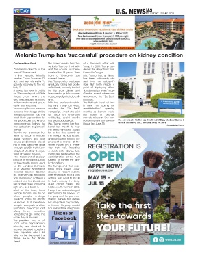 noncancerous kidney tu- Mrs. Trump joined her hus- House last June.q seen in Bethesda, Md., Monday, May 14, 2018. Associated Press