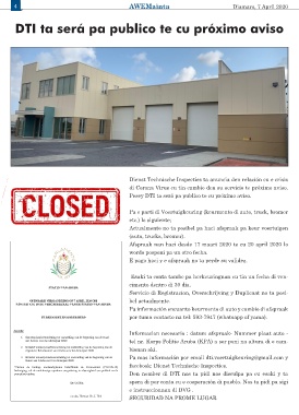 di Corona Virus cu tin cambio den su servicio te próximo aviso.