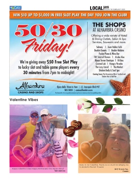 A15 LOCAL Friday 14 February 2020 Valentine Vibes Barry, to my Valentine, Thank you so much for bringing me to Aruba for the last 13 years! Happy Valentine’s Day! Happy Anniversary! One Happy Island! B+C=K Love You, Tom and Lisa Connie
