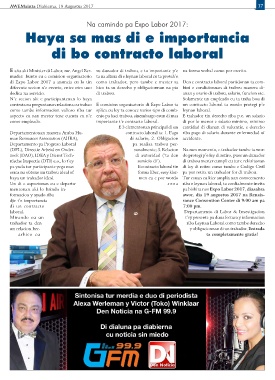 mentonan aki lo brinda in- pa bishita nos Expo Labor 2017, diasabra
