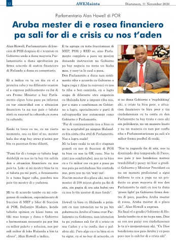 ofrece”, Alan Howell a indica. ta sigur, cu si no bay di acuerdo, cu poco nos lo sali for di e crisis aki”.